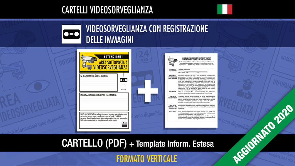 Cartello Videosorveglianza CON Registrazione: Template Cartello Verticale + Template Informativa Estesa (2020)